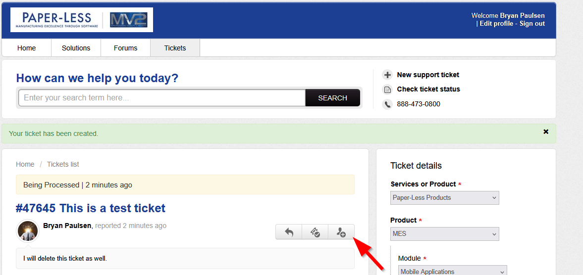 - Once you receive the notification for the new ticket from the Paper-Less ticket system, you may log in and add additional people to the CC list or you may reply to the notification email and CC others you want to have notified of updates to the tickets.