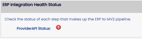 At the bottom of the page you will find the ‘ERP Integration Health Status’ section.