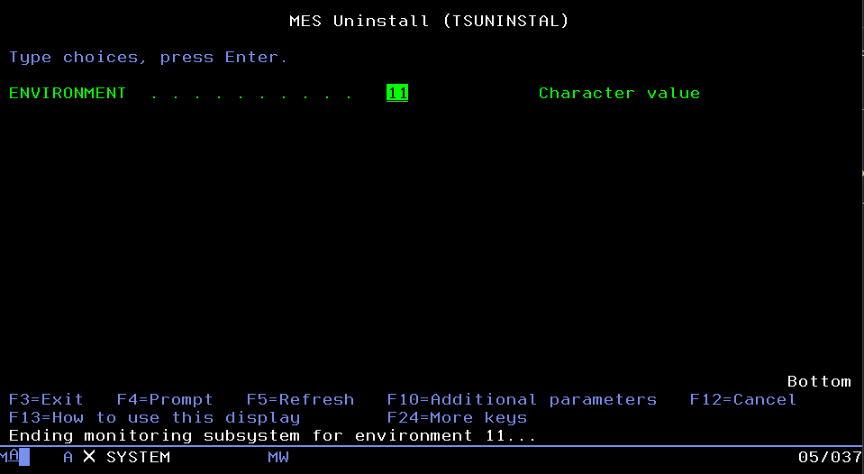 This document shows how to reinstall the MES subsystem. In the example screen shots, we use environment 11. Note that all the commands provided will replace an XA environment name with "xy". When utilizing these instructions, replace "xy" with the XA environment that the subsystem is being reinstalled for.