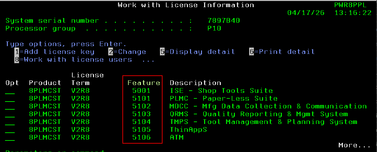 - Verify WRKLICINF command is notshowing any feature codes by entering the command